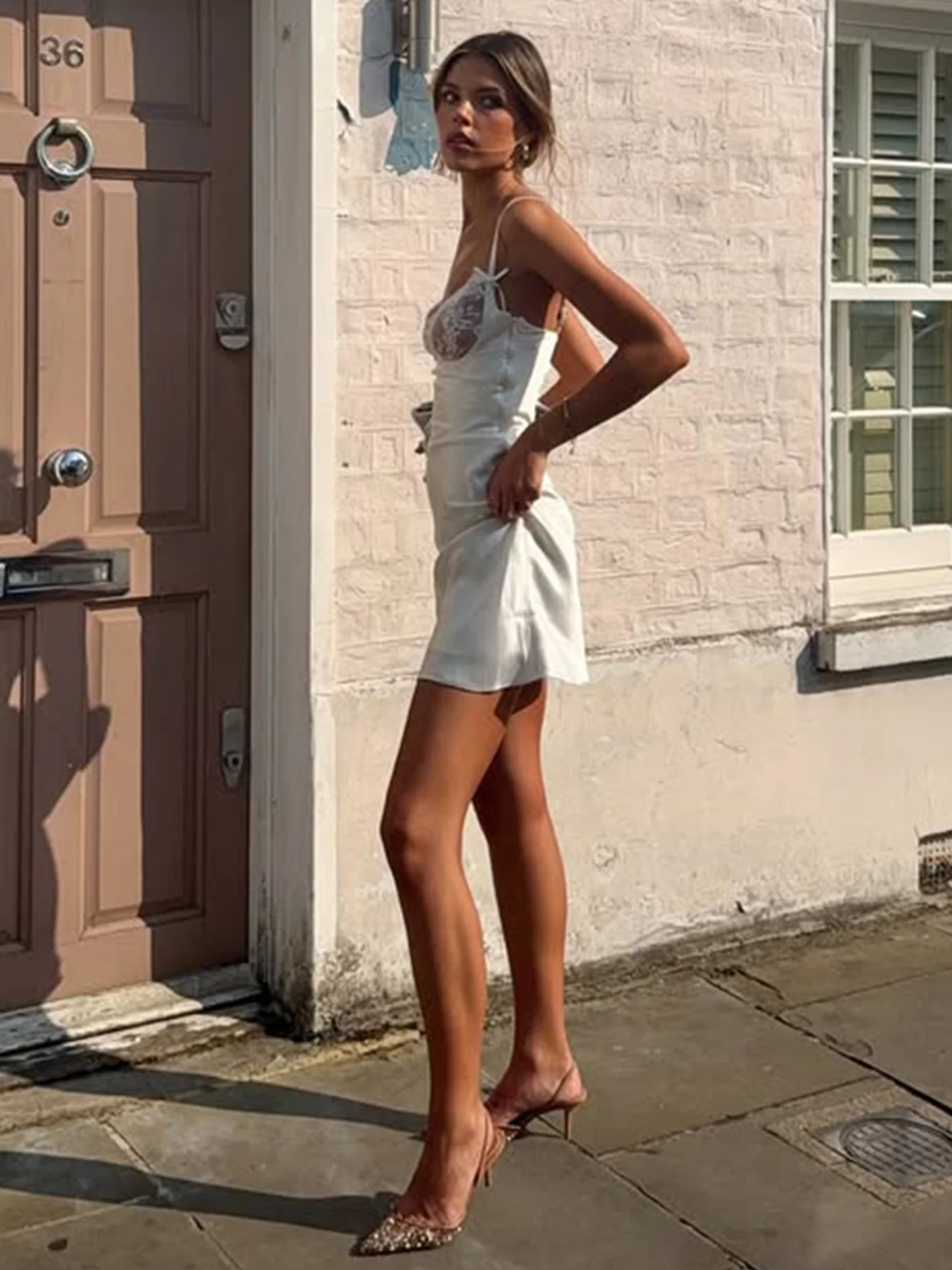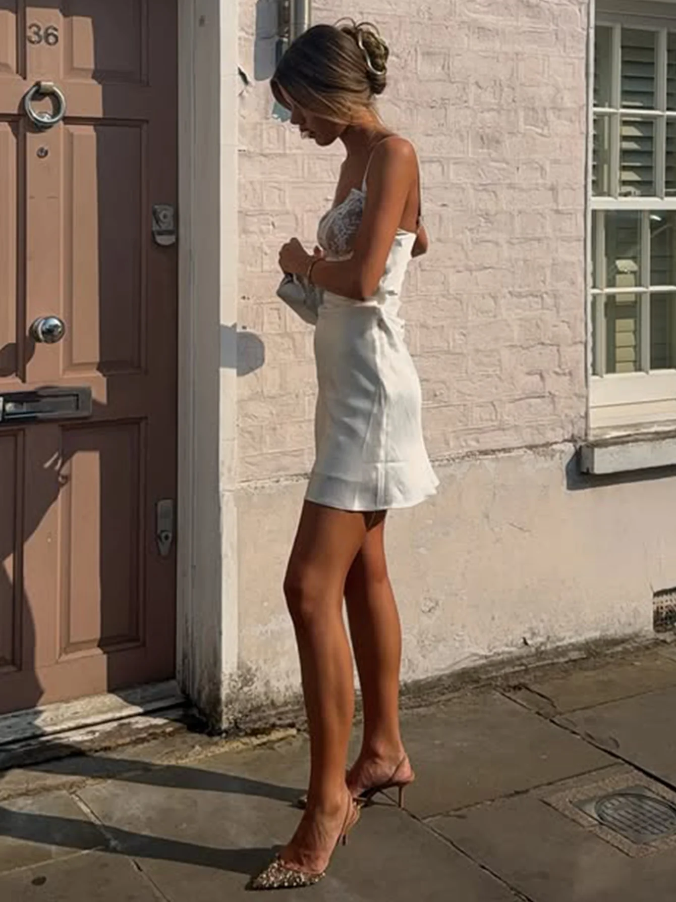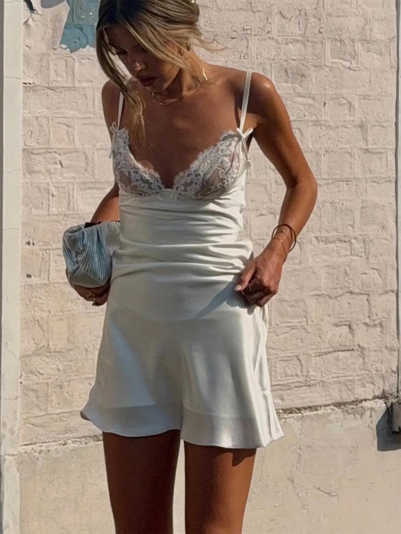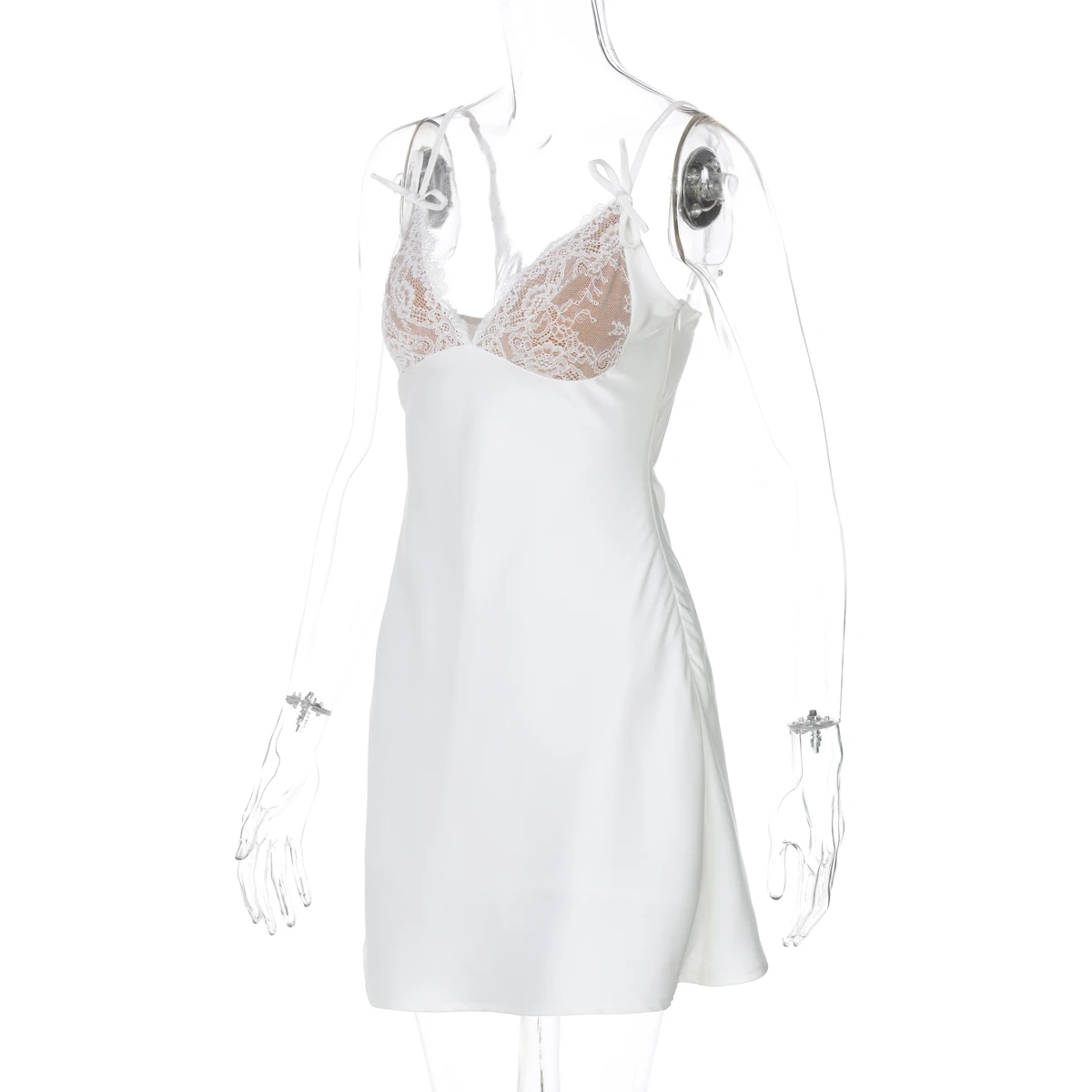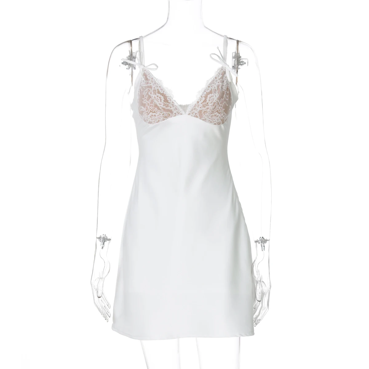 Dulzura 2025 Summer Latest Sexy Elegant V-Neck Backless Slim Fit Lace Ruffles Patchwork Suspender Mini Dress Party Club Clothes